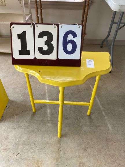 LOT 136 - SMALL YELLOW TABLE IN GARAGE - 22W BY 11D BY 24H