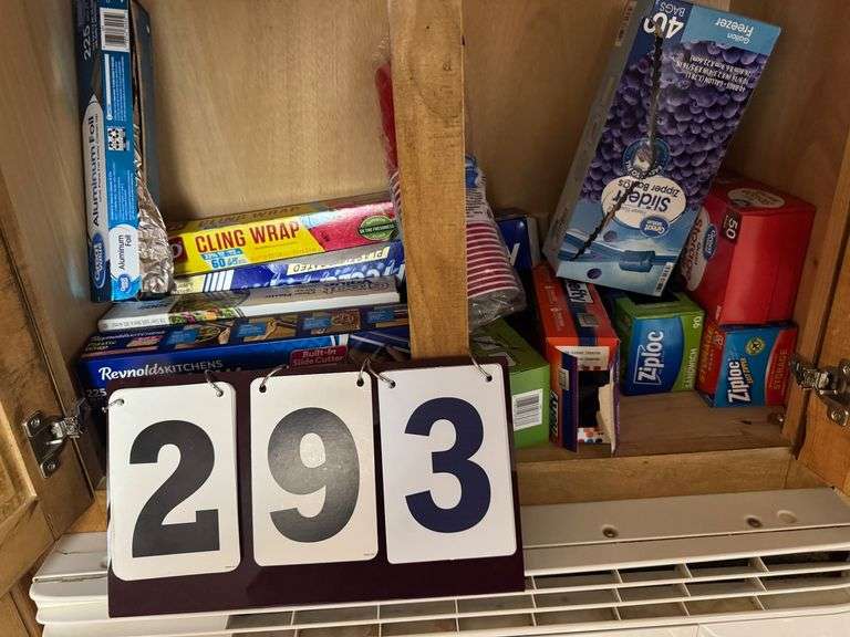 LOT 293 - CONTENTS OF CABINET OVER MICROWAVE